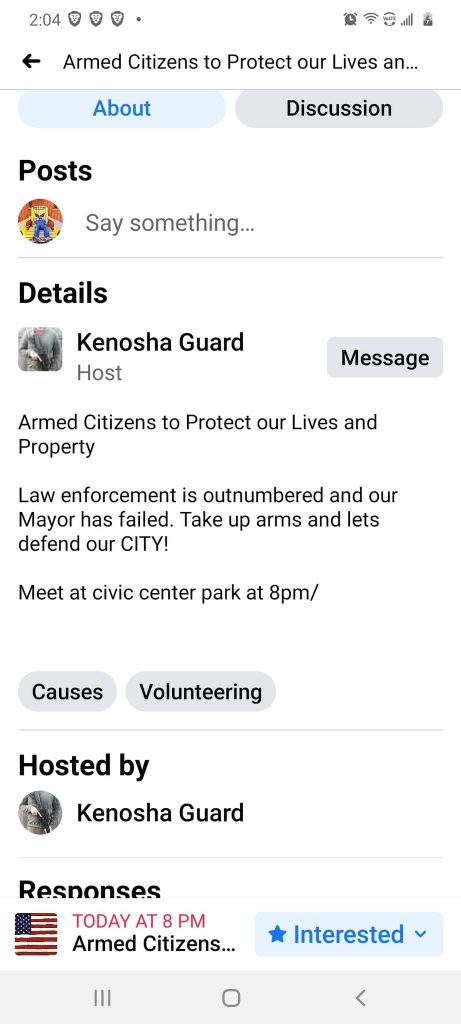 The Kenosha Guard, a local militia, is making a call-to-arms for “any patriots willing to take up arms and defend our city tonight from evil thugs.” The groups Facebook warns of potential future destruction to the neighborhood, claiming that there is “no doubt they’re currently planning on the next part of the city tonight!”