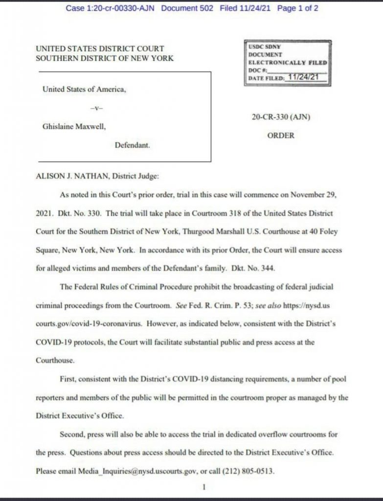 BREAKING: “Judge In Ghislaine Maxwell Trial Issues Media-Wide Gag Order: All Press & Spectators Barred From Courtroom.”
